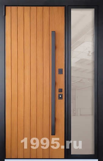 Металлическая дверь со стеклом сбоку, МДФ и длинной ручкой (терморазрыв) Арт: 895